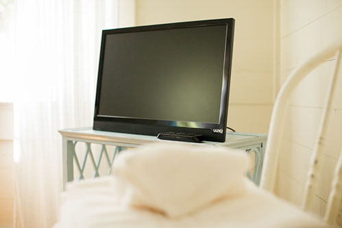 This room is light and airy with a comfortable “Beach House” feel. Furnishings include a queen size four poster bed covered with a handmade quilt, dresser, table, wicker chairs, cable television, and ceiling fan. If you would prefer a private breakfast, it can be enjoyed in your room overlooking our live oak “Crooked Tree.” This suite has its own large bathroom with spacious tiled shower and complimentary terry cloth robes.