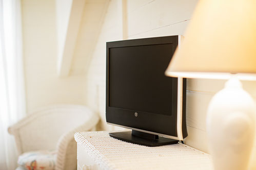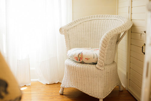 This is our smallest bedroom, but with a cute “beachy” feel. Furnishings include a full size wicker bed and dresser, table, cable television, ceiling fan and a baby bed. This room's dedicated bathroom is just across the hall. It's particularly well-suited for a family with kids, so that the kids can have their own room.