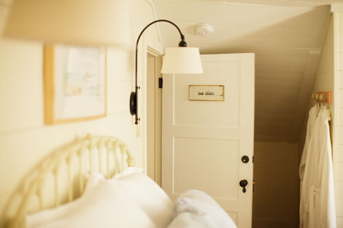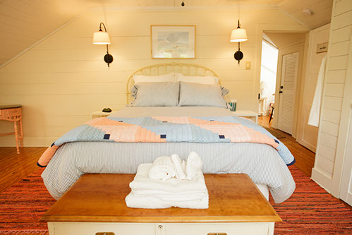 This spacious room has been renovated with a “Shabby Chic” feel. Vintage furniture includes a queen size cast iron bed covered with a handmade quilt, dresser, table, wicker chairs, cable television, and ceiling fan. If you would prefer a private breakfast, it can be enjoyed in your room overlooking our live oak “Crooked Tree.” This suite has its own large bathroom with spacious tiled shower and complimentary terry cloth robes.